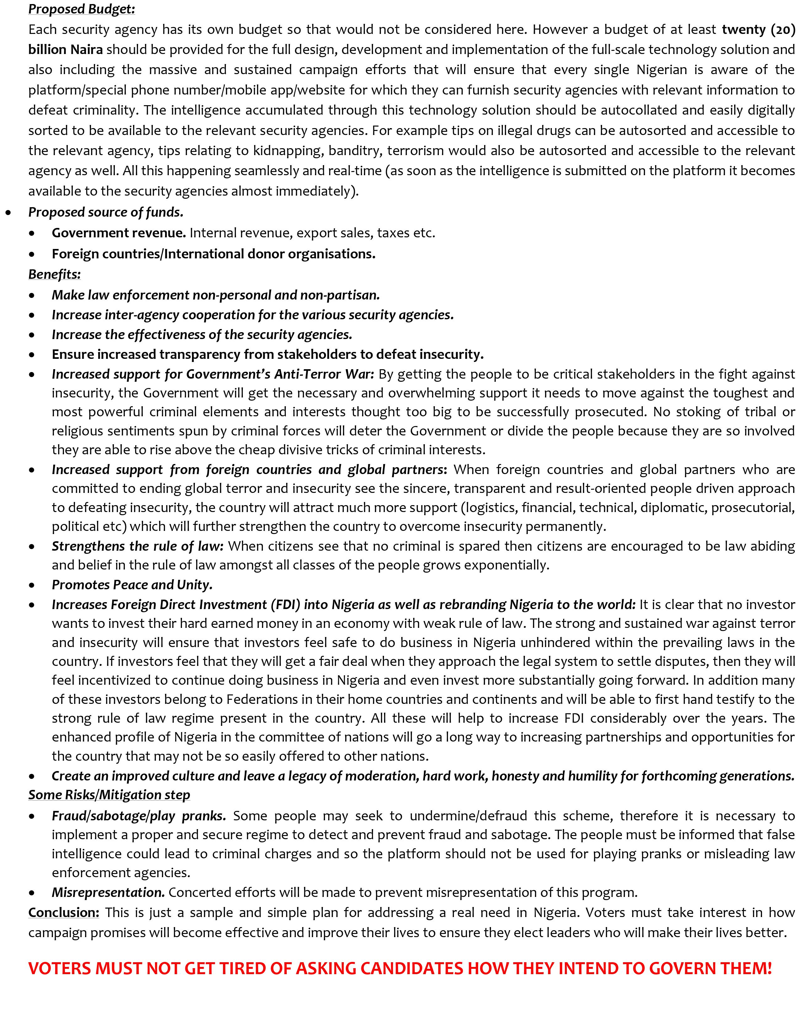 SAMPLE ACTIONABLE PLAN FOR ENHANCING CITIZENS’ INPUT IN INTELLIGENCE GATHERING AND STRENGTHENING LAW ENFORCEMENT FOR A CANDIDATE SEEKING PUBLIC OFFICE